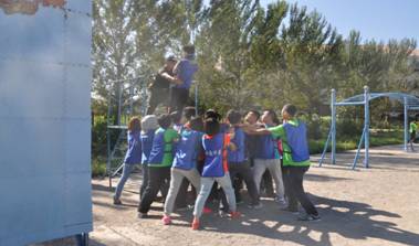 本次拓展训练的最后一个项目是翻越毕业墙。全体学员打破连队间的束缚成为一个整体。大家忘记了国籍的不同,性别的差异,纷纷表现出甘当人梯的精神。最终,学员们齐心协力、共同进退,克服重重困难征服了毕业墙。胜利的喜悦化作泪水和微笑,绽放在每一名队员的脸上。