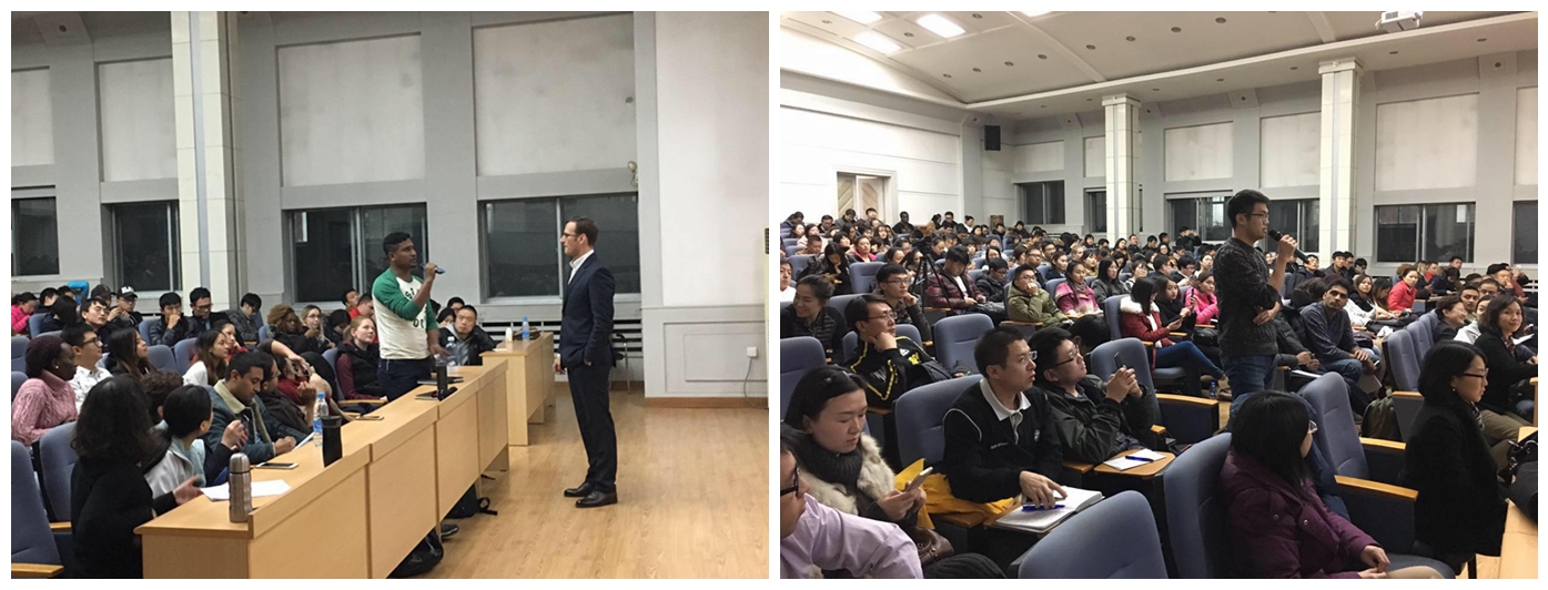 在同学们热烈的掌声后,进入到问答环节,针对同学们提出如何加强数字化方面知识、工业4.0对雇佣市场的影响、宝马如何进行数据收集、以及中国沈阳的当地企业该如何迎接数据化工业变革等问题,Mr. Hauk一一作出详细的回答。随后,郁院长对整场讲座进行总结,希望学员们能将今天的所学运用到自己的工作学习中,以获得更大的进步。