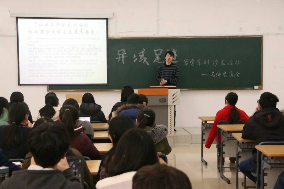 12月5日13:00,由工商管理学院学生工作办公室举办的“异域足迹”留学系列沙龙活动第一期——名师交流会在文管学馆b112顺利举行。此次交流会邀请工商管理学院国际经济与贸易系安岗老师主讲,辅导员石天老师参加。