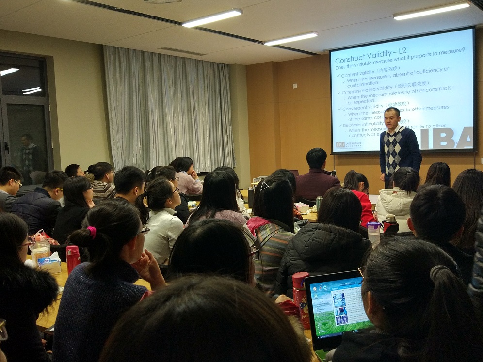 为全面提升学院人才培养质量,激发学生的创新潜能,使其掌握管理学研究的科学方法,为毕业论文以及将来的科学研究实践打下良好基础,1222日至23日,工商管理学院邀请上海财经大学国际工商管理学院助理教授,人力资源系副主任蔡亚华博士为高年级本科生进行了“管理学实证研究方法系列讲座”。