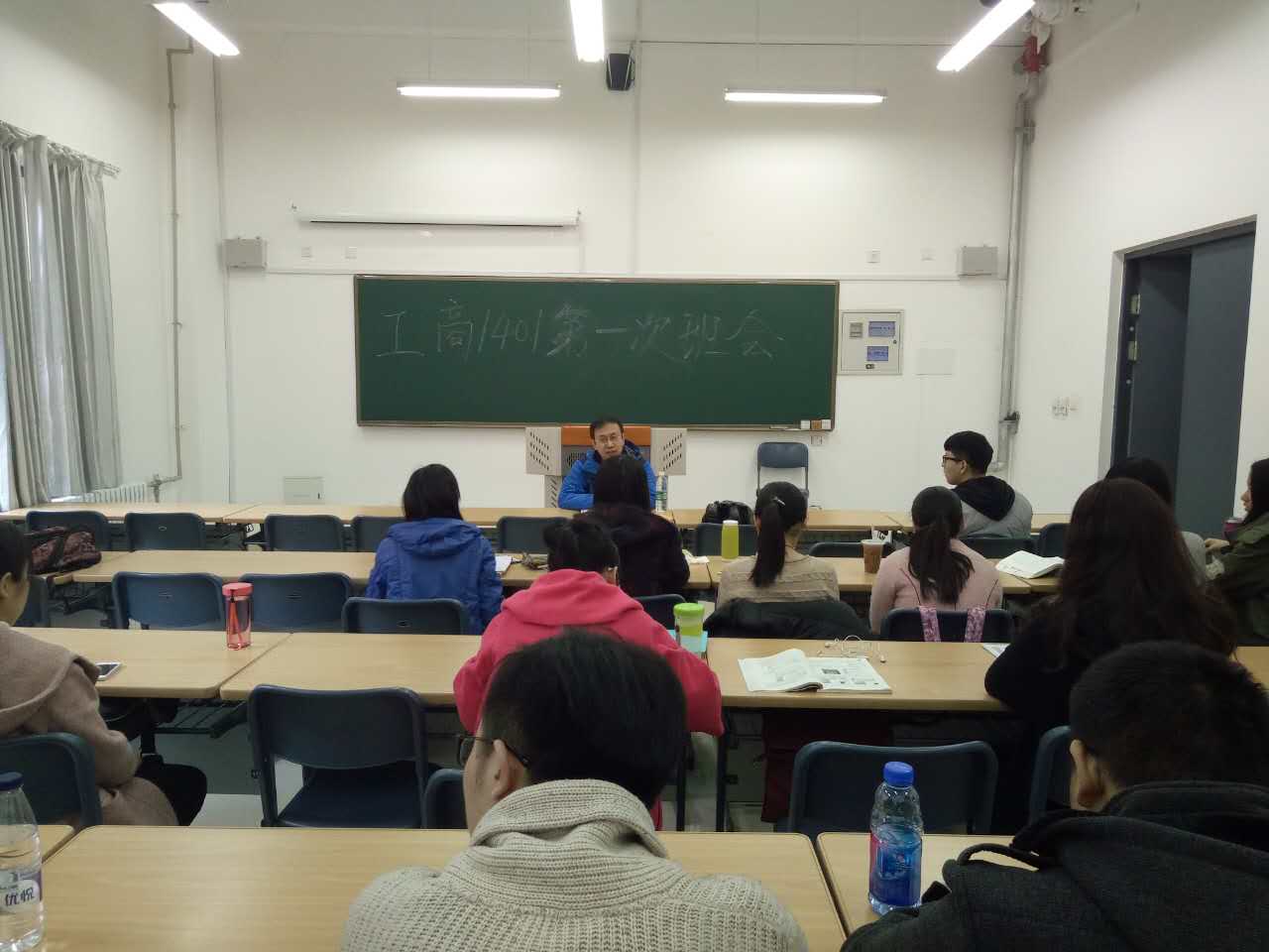 2017年3月22日星期三上午九点,在文管学馆B103教室工商1401班举行了本学期的第一次班会,本次班会由班导师王宝森老师倡议召开,班会的主题是“学习和未来的发展方向”。