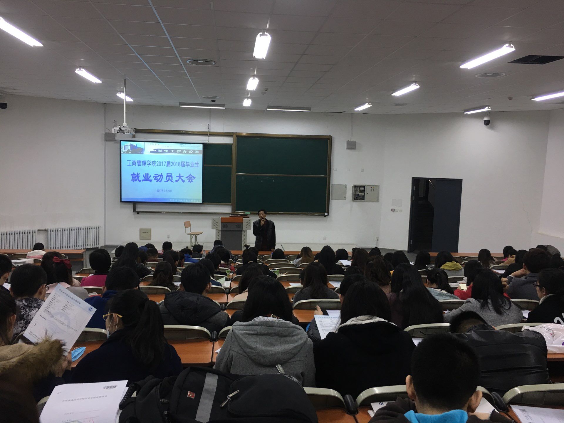 (通讯员:董影茁)为进一步推进我院2017届本科毕业生和2018届毕业研究生就业工作,帮助毕业生清醒认识当前就业形势,引导毕业生树立正确的择业观和就业观,结合2017年春季双选会的举办,3月23日,工商管理学院毕业生就业工作动员会在浑南校区文管学馆A129室举行。受学院委托,会议由工商管理学院党委组织员兼2018届毕业研究生辅导员董影茁老师主讲。2018届毕业研究生和部分本科生200余人参加了动员会。会上,董老师围绕国家经济社会大的背景,阐述了当前的就业形势。结合我院2017届研究生及本科毕业生的就业情况,并结合研究生学科、学制特点,为毕业生提供了许多建议,提醒毕业生要注意就业过程中的相关问题,并解答同学们的疑惑。董老师指出,作为毕业生要不断更新就业观念,树立健康的择业就业观,要增强对就业现状的了解和认识,为成功就业做好充分准备,他希望大家能调整心态,积极关注就业形势,踊跃参加各类招聘活动。