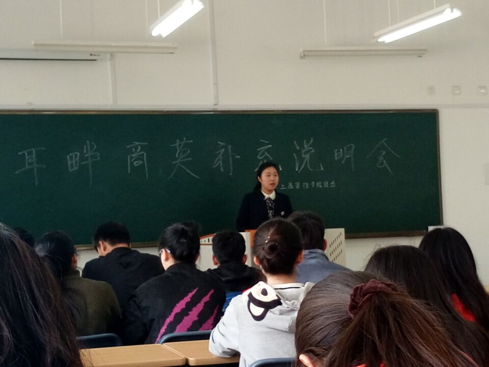 会议上,团委书记杨光代表学院对于各团支部的工作给予了肯定,以“耳畔商英”“商英启晨”活动为例,细致解释了开展“一学一做”活动的意义。同时,杨光就如何做好一名团干部,如何做好团支部建设这一主题进行了阐述,她强调,各团干部在开展工作的过程中要摆正自己的位置,多为同学们考虑,多站在同学们的立场上思考问题,抱着为同学们服务的心态去工作,真正做到从学生中来到学生中去。