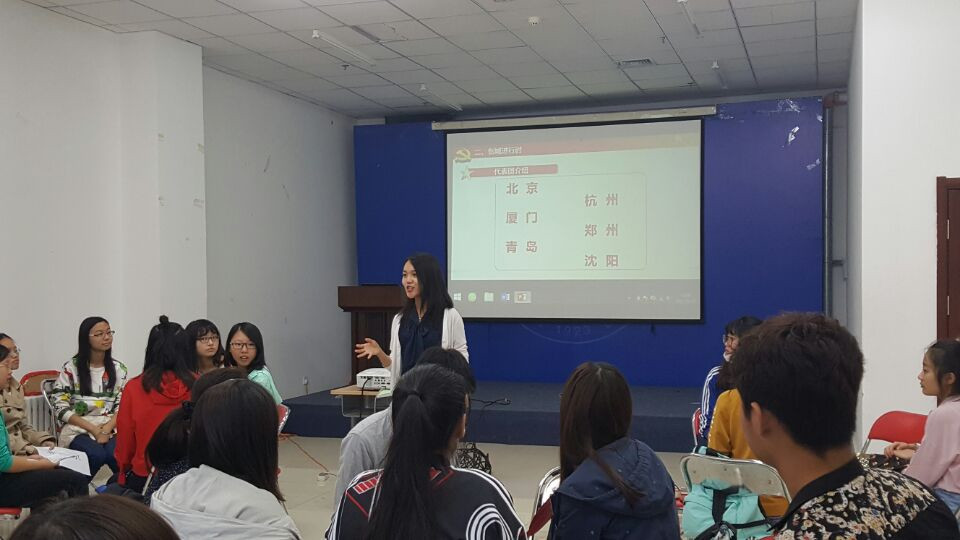 在何瑾璇、吴启航的组织下,支部成员围绕社会主义核心价值观,融合沈阳创建文明城市这一时代热点,通过学习北京、杭州、厦门、青岛、郑州等城市文明建设方面的优秀经验,以模拟会议磋商的形式,对沈阳文明城市的创建献言献策。同时总结沈阳市近年来在经济、环境方面发展的优势和不足,分析城市发展转型等问题。最后,通过介绍党的十九大召开的重大意义,号召同学们肩负民族使命,总结过去经验,继往开来谋划未来发展。此外,宋静老师对本次团日活动作出点评,在欢迎各位优秀的同学进入会计1604的同时也希望大家可以在学习生活中相互帮助,全面提高自身综合素质,砥砺前行成为更优秀的人才。