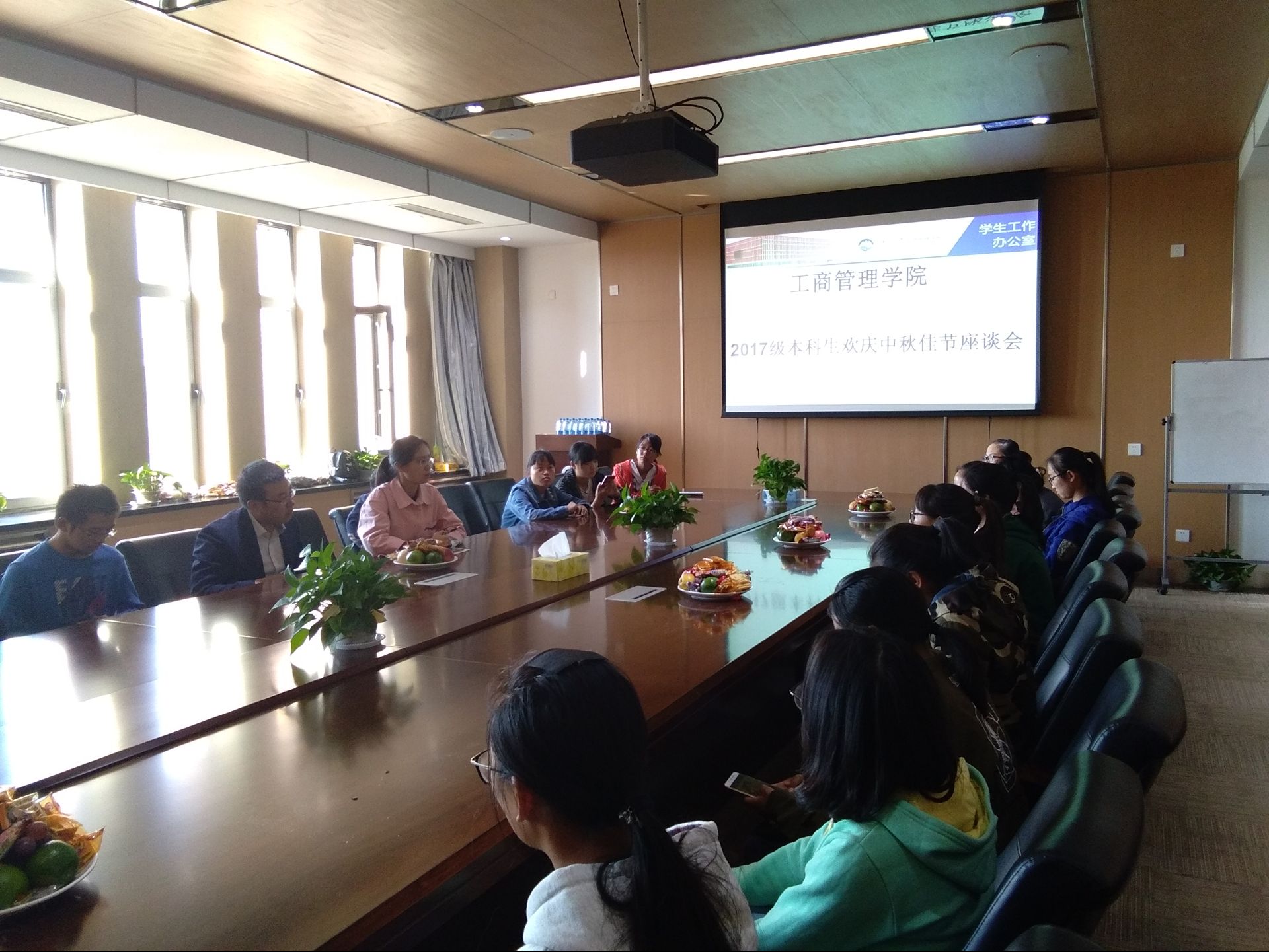 10月4日上午8:30,工商管理学院2017级本科生欢庆中秋佳节座谈会在文管B306室成功举办。东北大学新疆内派服务管理教师林宏磊、学院2017级本科生辅导员王鹤棋、2017级硕士研究生苏钟海、时顺鹏出席了座谈会,2017级新疆、西藏籍少数民族学生以及家庭经济困难学生参加了本次活动。