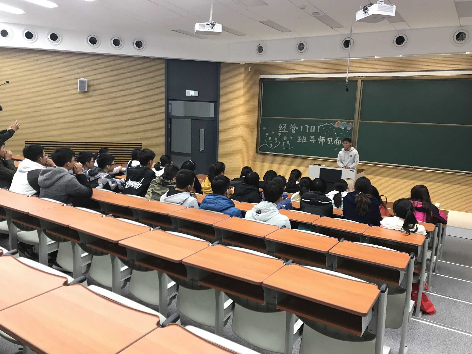 10月18日下午4点,经管1701班在一号楼A207召开班导师见面会,班导师兰博老师与辅导员王鹤棋老师参加此次活动。