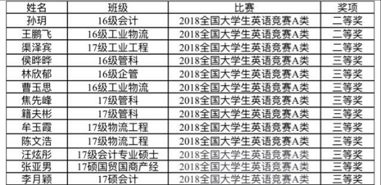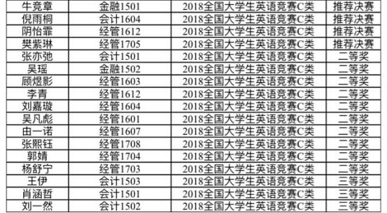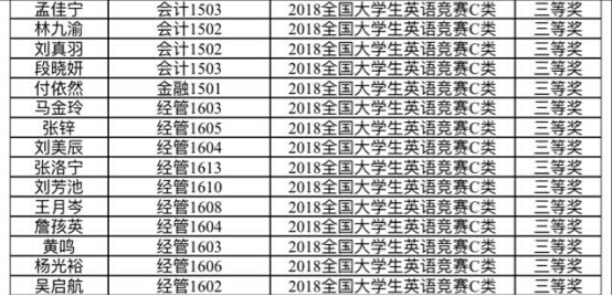 附:工商管理学院2018年全国大学生英语竞赛获奖名单