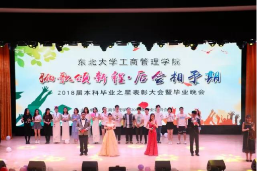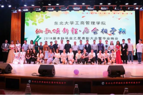 6月21日18:30,工商管理学院“骊歌颂新程,后会相予期”2018届本科毕业之星表彰大会暨毕业晚会在浑南校区图书馆一楼报告厅成功举办。东北大学党委副书记张国臣、学生工作处处长马天威、学生指导服务中心主任刘云飞、团委副书记黄达、创新创业学院副院长王刚、新疆特派驻校指导教师阿米娜、林宏磊,工商管理学院院长马钦海、党委书记郝树满,班导师及企业发展指导师代表等出席本次活动。活动分为表彰大会及毕业晚会两个部分,工商管理学院2018届本科毕业生到场观看。