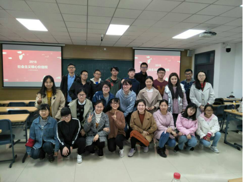 在2018年3月27日晚七点,经管1706班和软日1701班全体成员在一号楼B109开展了“雷锋精神志愿行·共育核心价值观”主题团日活动。