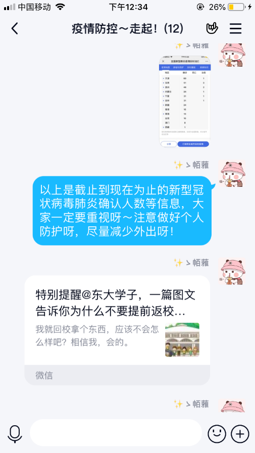 “有困难,找党员,我们就在身边”。学生党员深入了解同学们实际情况,通过健康小贴士、每日打卡等方式真正和同学们走到一起去,切实为同学解决生活、学业上的困难,在疫情期间帮助同学们消除恐慌和疑虑,提高大家对疫情防防控的重视程度,做到真正被同学们信赖,为同学们服务,做好沟通的桥梁。