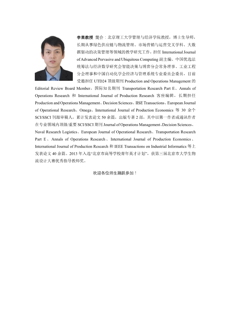 邀请北京理工大学管理与经济学院李果教授学术报告