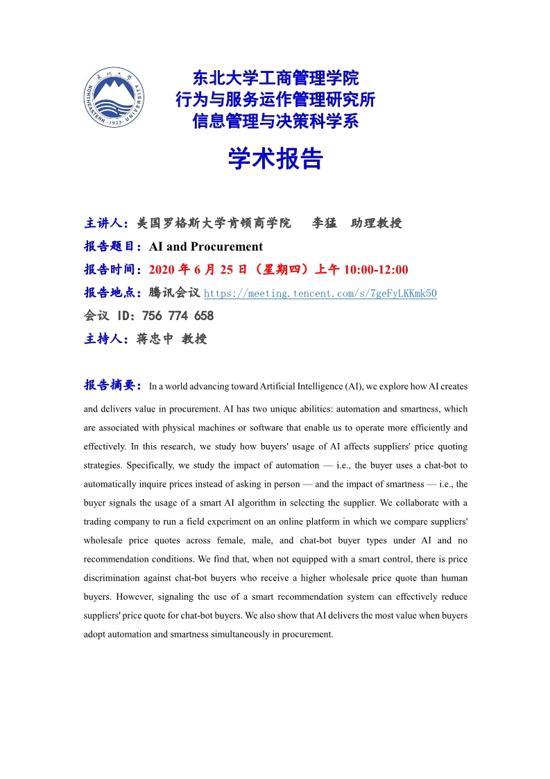 邀请美国罗格斯大学肯顿商学院李猛博士学术报告