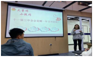 薄富帅同学朗诵《我挚爱的这片土地》爱国诗篇,激情豪迈的声音与真挚深切的情感点燃了大家心中不息的爱国情、强国志。通过猜红歌游戏,同学们以轻松的方式,唤起了内心中的红色记忆,唱出了新时代的感动,并立志将红色经典文化内化于心外化于行,将红色精神在实践中传承和发扬。团日的最后,班导师戚桂清进行总结讲话。