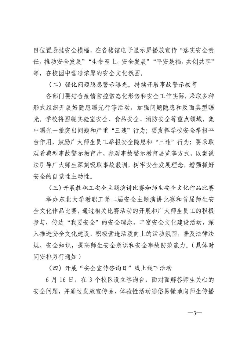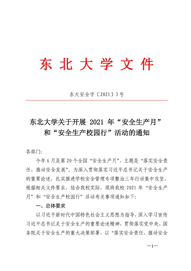 东北大学关于开展 2021 年“安全生产月”和“安全生产校园行”活动的通知