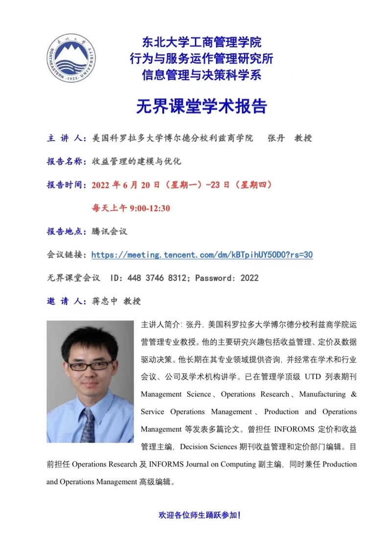 邀请美国科罗拉多大学博尔德分校利兹商学院张丹教授学术报告