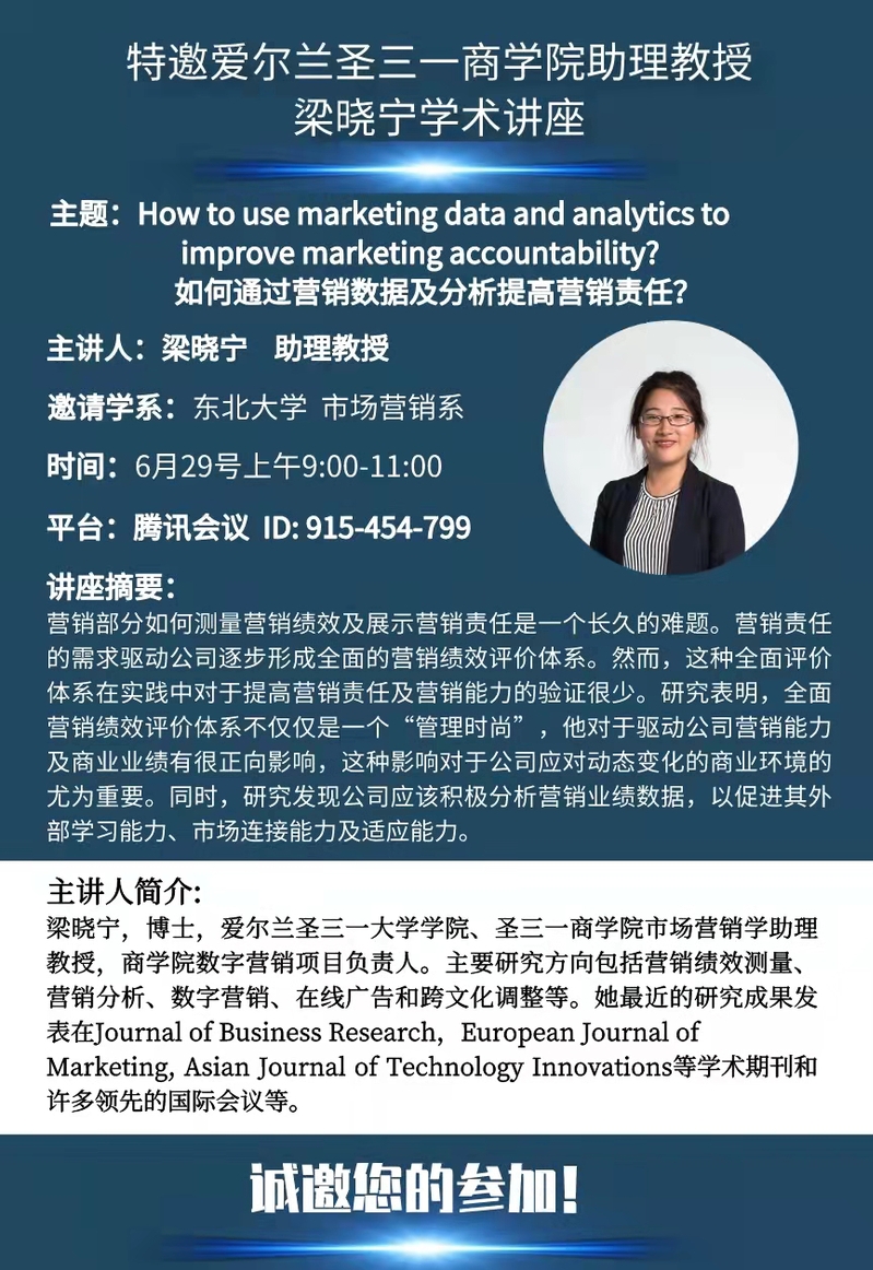 邀请爱尔兰圣三一大学学院梁晓宁助理教授学术报告