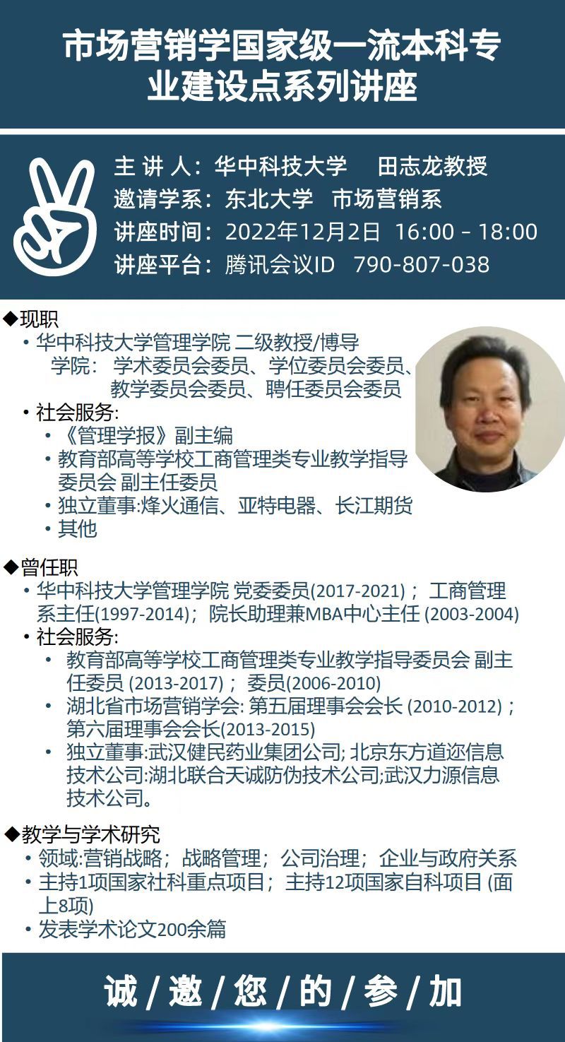 邀请华中科技大学管理学院田志龙教授学术报告