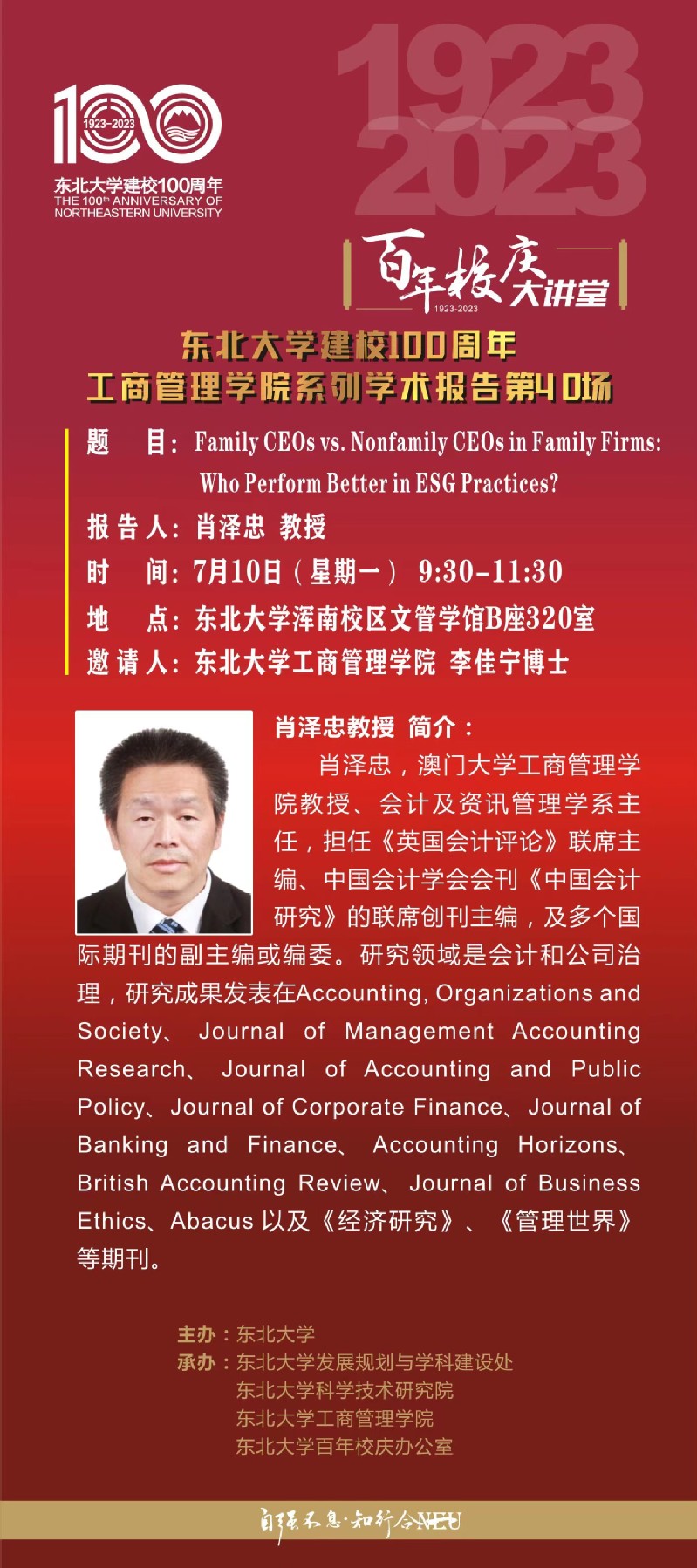 邀请澳门大学工商管理学院肖泽忠教授学术报告