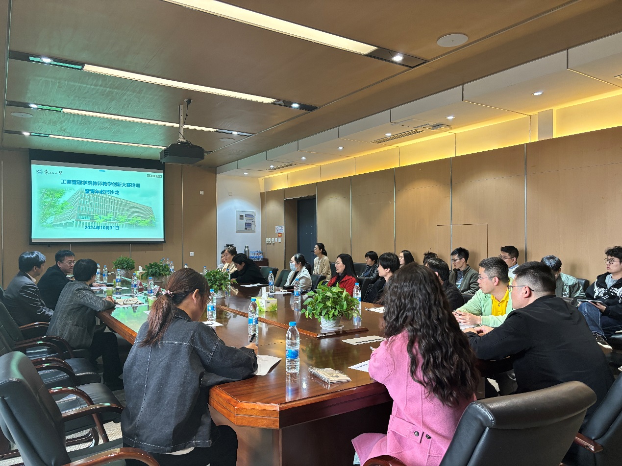 10月31日,工商管理学院在文管B306举办了教师教学创新大赛培训暨青年教师沙龙活动。武汉理工大学管理学院副院长、博士生导师、全国高校教师教学创新大赛一等奖获得者张光磊教授,工商管理学院党委书记任丽、副院长贾建锋出席会议,学院教师教学创新大赛参赛教师及学院青年教师参加活动。本次活动由本科教学办和学院工会联合举办,会议由副院长贾建锋主持。