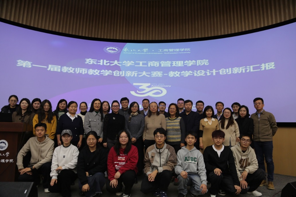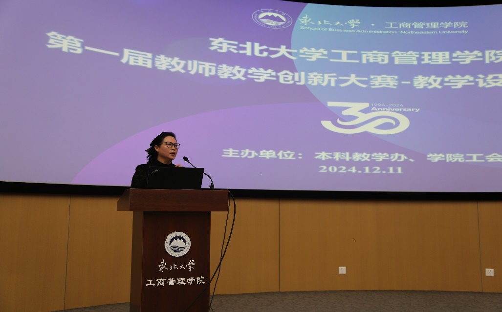 12月11日下午,工商管理学院第一届教师教学创新大赛决赛在文管楼B450举行。工商管理学院党委书记韩斌,副院长贾建锋,党委副书记、纪委书记王昱,副院长庞洪江,工会主席辛冲参加活动。辽宁大学国际交流处处长、省级教学名师谢名一教授,东北大学创新创业学院副院长、国家级教学名师顾晓薇教授,校工会副主席张琦教授,省教学名师郭伏教授,校教学名师张兰霞教授,校教学标兵郭德仁副教授以及学院各专业本科生代表担任大赛评委。副院长贾建锋主持开幕式。