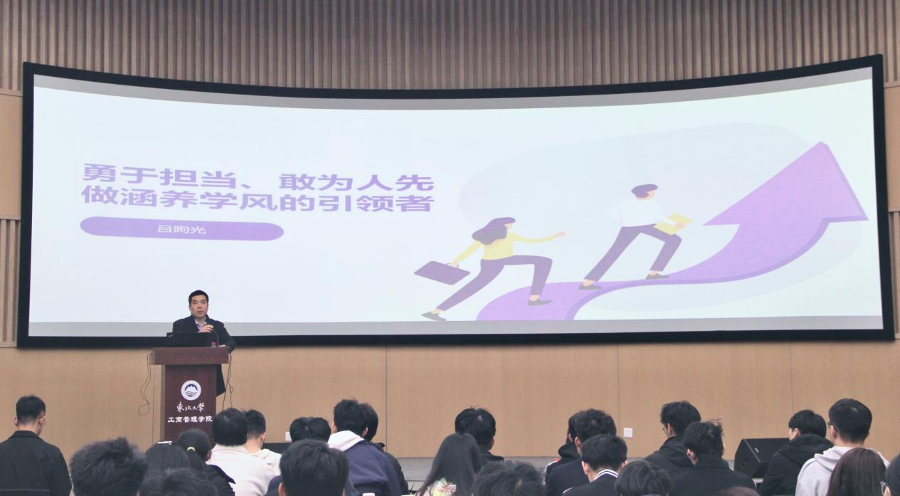 为进一步强化学风建设引领作用,工商管理学院于4月2日,在文管学馆B450举行“商英励学”卓越学风涵养工程启动仪式暨“思·学”商英讲堂第一讲活动。学院党委副书记、副院长(兼)吕昫光,学生工作办公室全体辅导员出席活动,大一至大三年级共计百余名学生骨干共同参与,正式开启学院学风建设新篇章。
