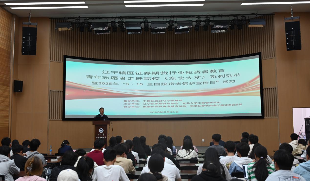 5月21日,由东北大学工商管理学院联合辽宁证券期货业协会共同主办的辽宁辖区证券期货行业投资者教育青年志愿者走进东北大学活动在浑南校区文管学馆B450室举办。工商管理学院党委副书记、副院长(兼)吕昫光,辽宁证监局法治处、辽宁证券期货业协会及恒泰证券沈阳奉天街证券营业部相关负责人出席活动,130余名学生参加活动。