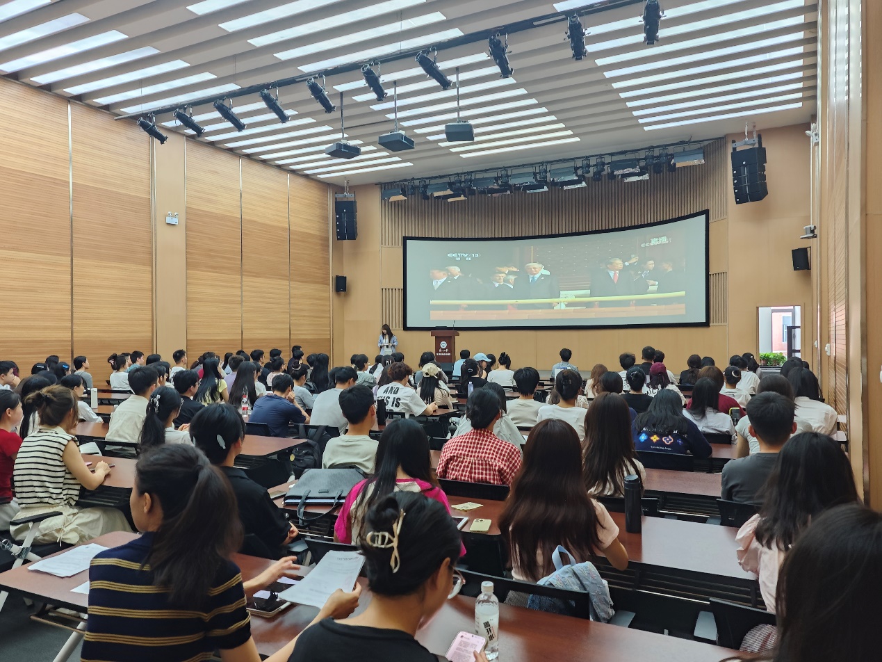 9月3日上午,纪念中国人民抗日战争暨世界反法西斯战争胜利80周年大会举行。工商管理学院组织全院师生以线上线下相结合的方式共同收看大会盛况,学习习近平总书记重要讲话。学院党委理论学习中心组在文管学馆B306会议室、部分学生党员在文管学馆B450会议室、经济学系教师在文管学馆B321会议室开展集中学习,其余师生通过网络平台线上收看。